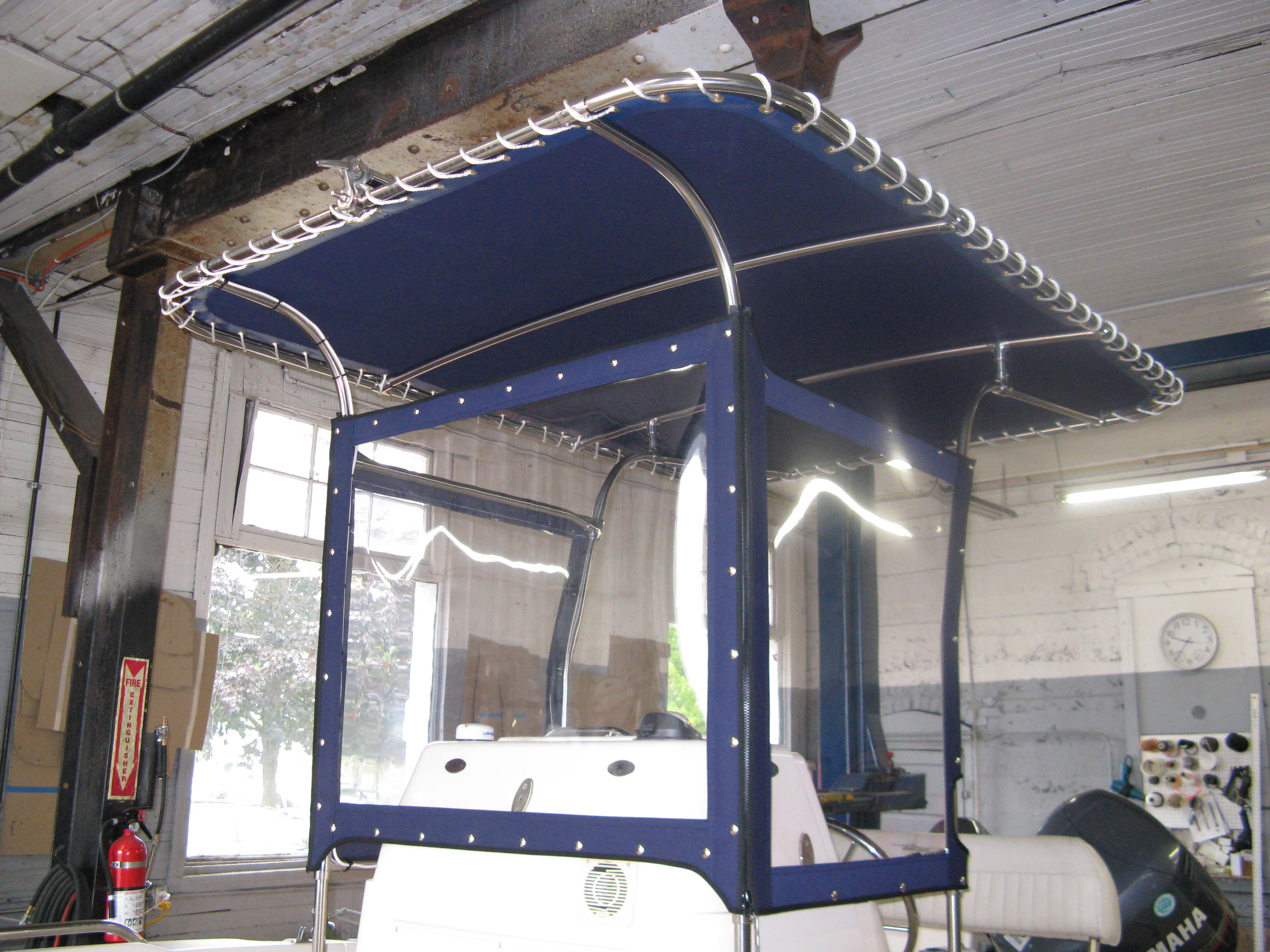 | We provide the finest in custom-made boat tops, bimini tops, side curtains, slant backs, camper backs, full boat covers, bow and cockpit covers and motor covers. |